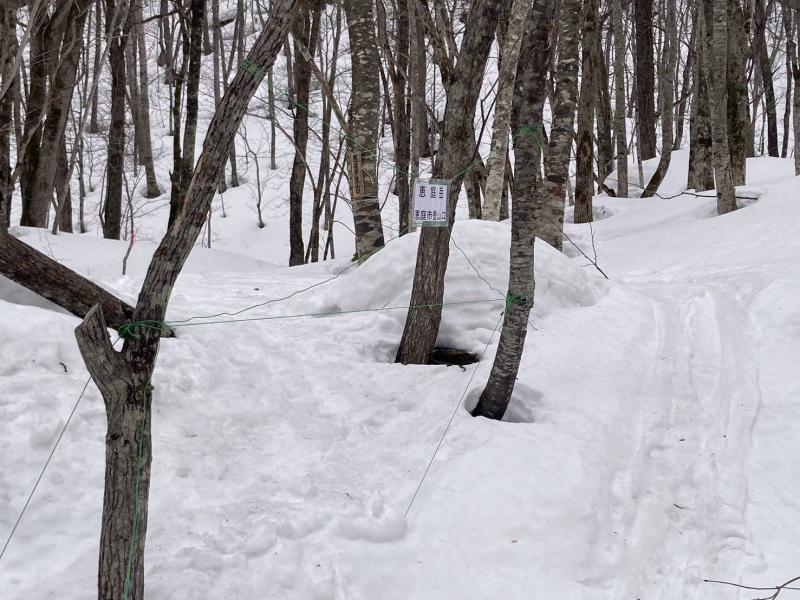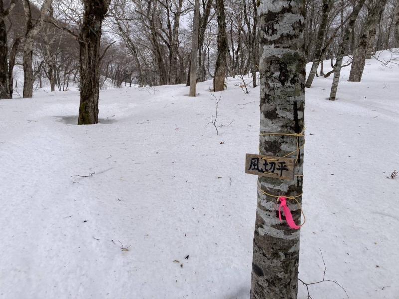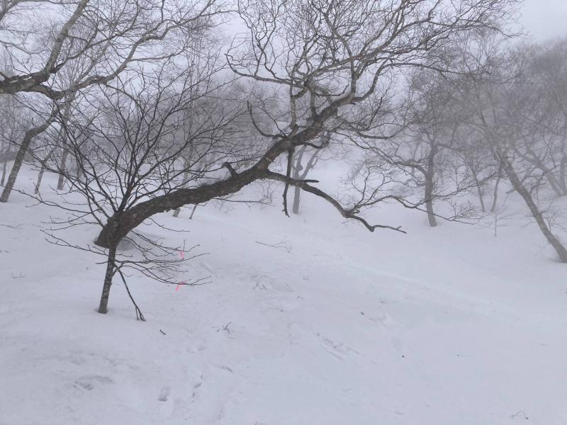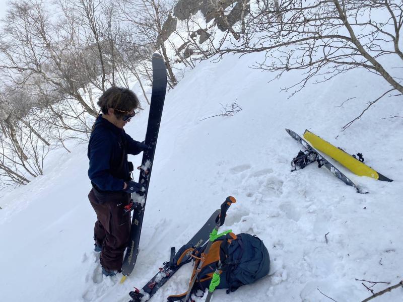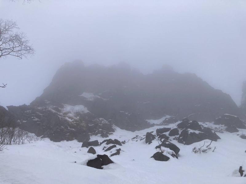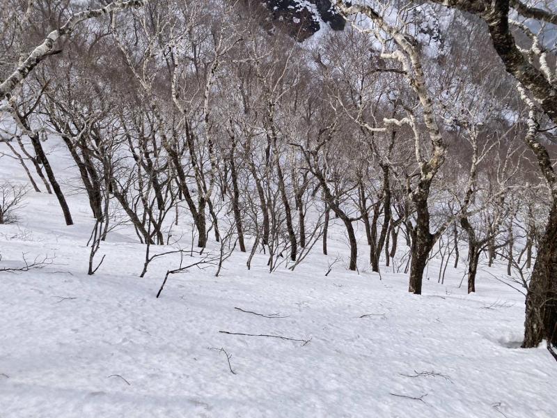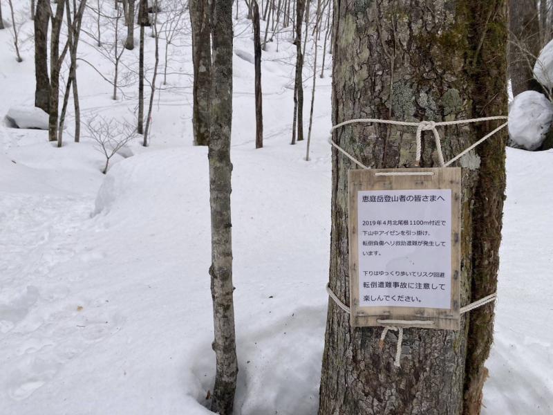 山頂付近滑落防止の為、ピッケルのみ使用。