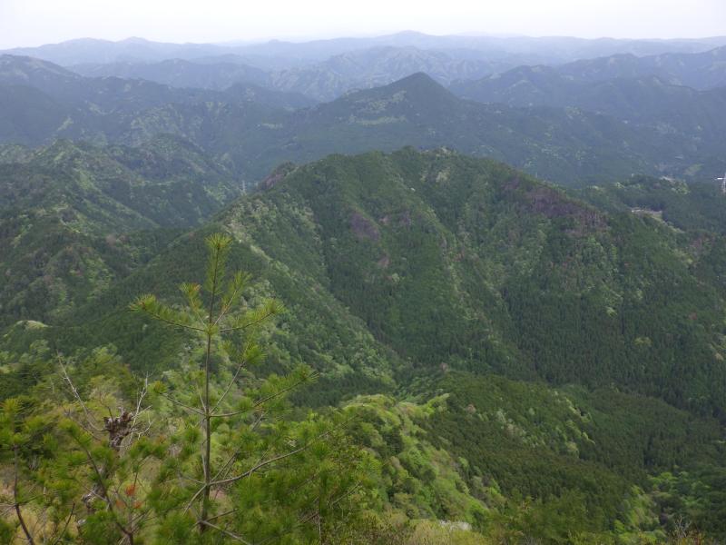 尾籠岩山までは1時間程度ですが、麓から見る山の姿ほどは厳しくなく、明神山との分岐からは確かに両側が切れ落ちた断崖でヤセ尾根のような感じになっているものの、樹林帯で囲まれているので怖さはありません。途中ののぞき岩からふこの断崖上に立てますが、登山口の集落が見え、結構登って来たのが実感できます。またこの辺りはアカヤシオやヒカゲツツジの群生があるようですが、散っていました。もうすぐしたらシャクナゲが開花すると思われますが、そっちのの方が知られていますね。