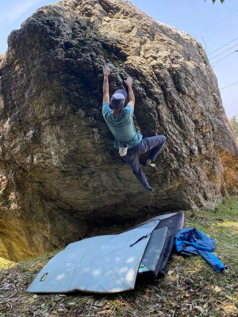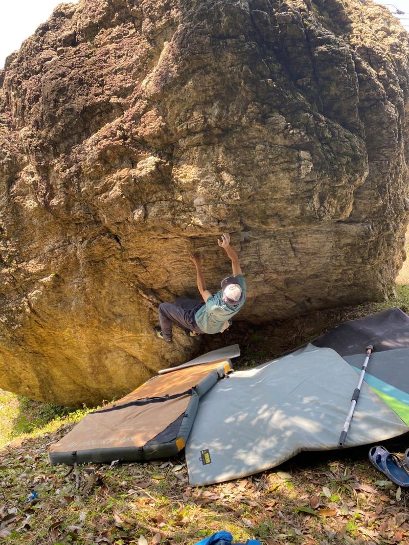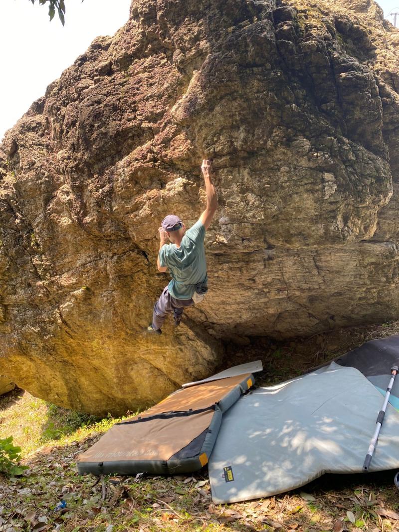中間部のホールドの保持が厳しく、グレード以上に難しく感じました。
