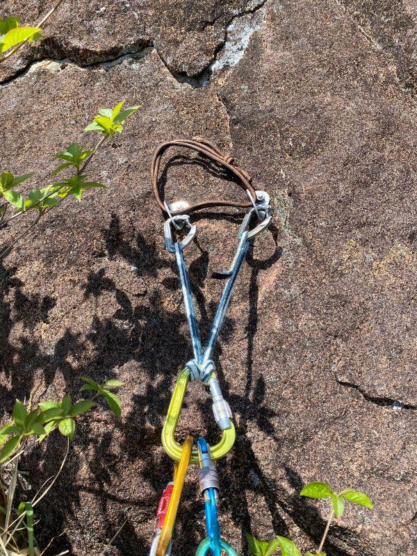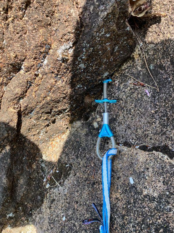 トラバースピッチ。ボルトの数が少なくフォローにもプレッシャーがかかるのでマイクロカムでプロテクションを取りました。