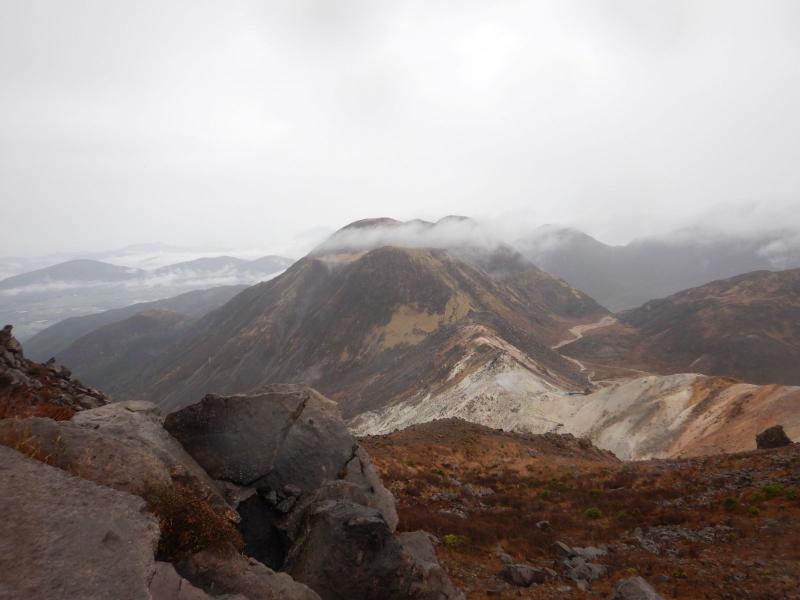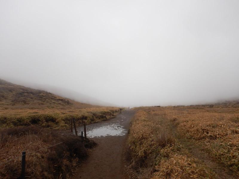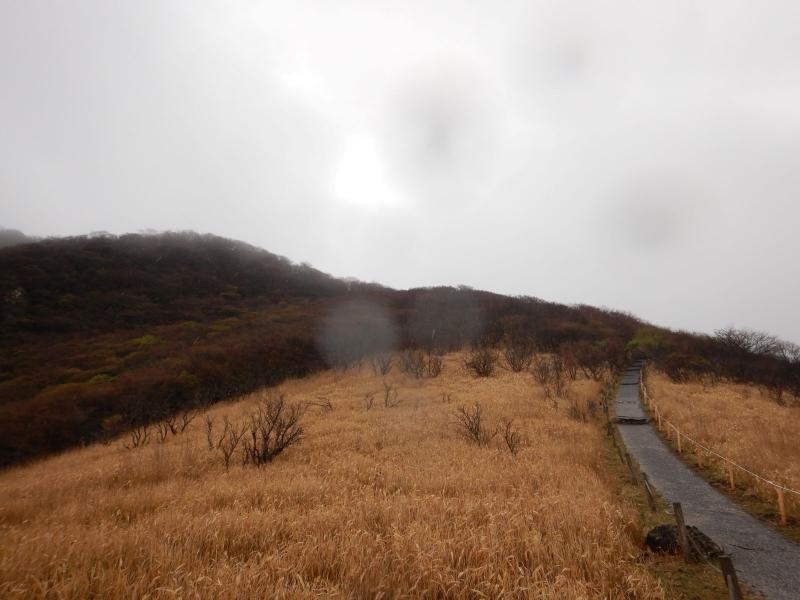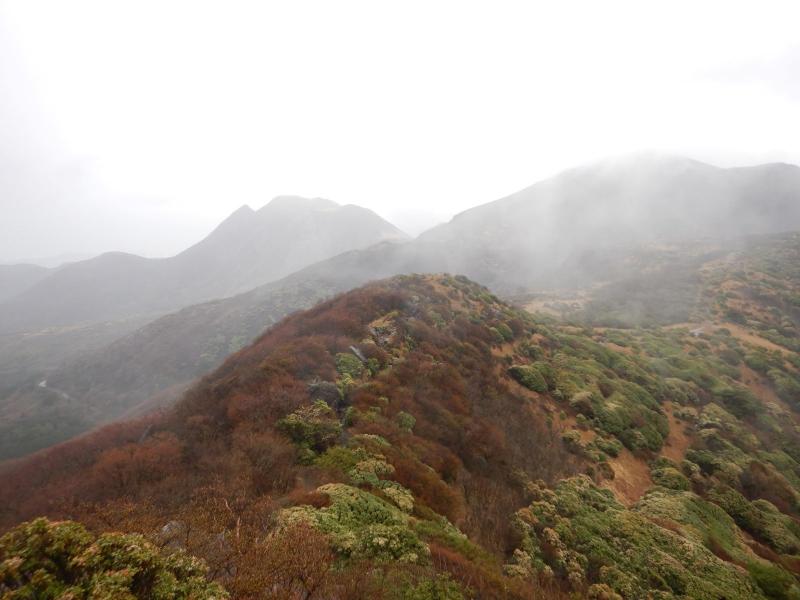 さて山の方はというと、雨の中ではありましたが、樹林帯の中を歩くわけではないので、ガスがかかったくじゅうの景色というのも趣があって私は好みでした。