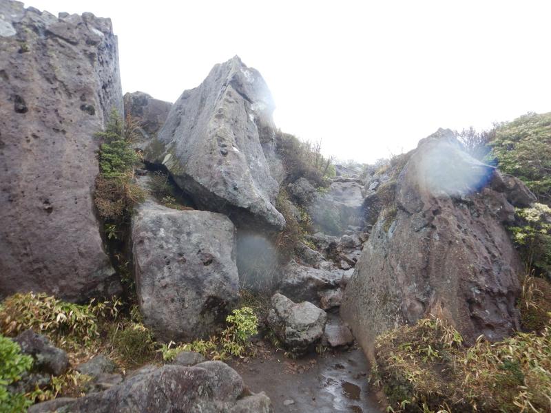 沓掛山までは整った登山道で歩きやすいですが、星生山へ向かって岩がちで足場の悪い道に変わります。濡れた岩は滑りやすく気を遣います。