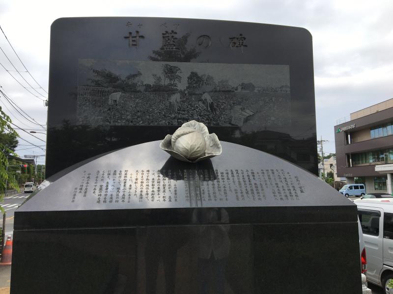 長命寺の次は三宝寺に向かいます。大通りではなく川沿いに歩くため南田中団地のところまで行き、南田中橋のところで川に沿って歩きます。しばらく歩くとJA練馬があったのでトイレ休憩に寄りました。外にとても立派なキャベツの碑があり、はじめて見たので驚いていたら友人が、JAがリニューアルするときにキャベツの碑がなくなったと思って悲しんでいたらここに移動されていたという思いで話をしていました。