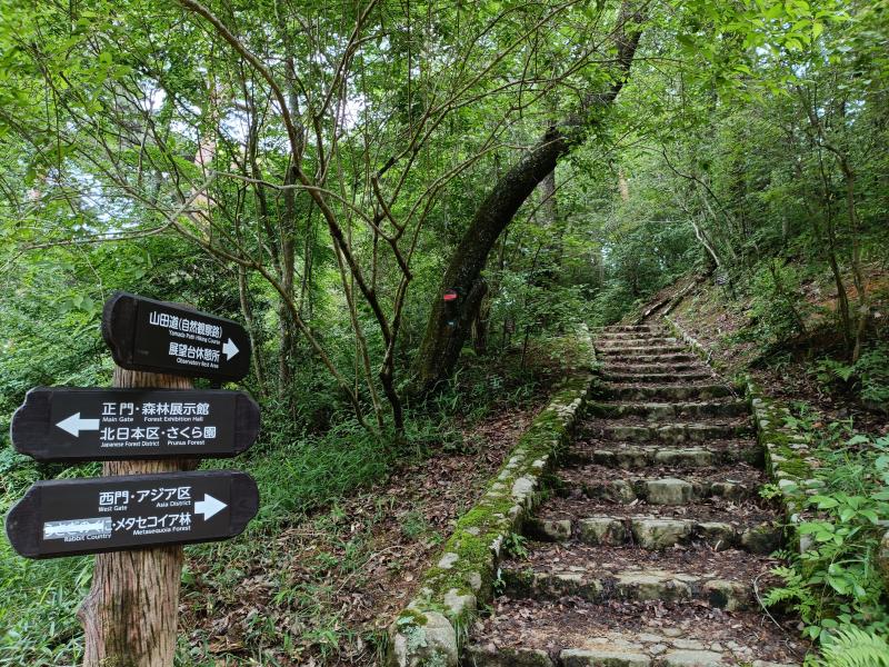 - お手洗いやベンチが随所にあります。今日は中にある細い道をいくつも抜けたので、上り下りや、クモの巣や足元が草で見えにくい箇所も多々ありました。