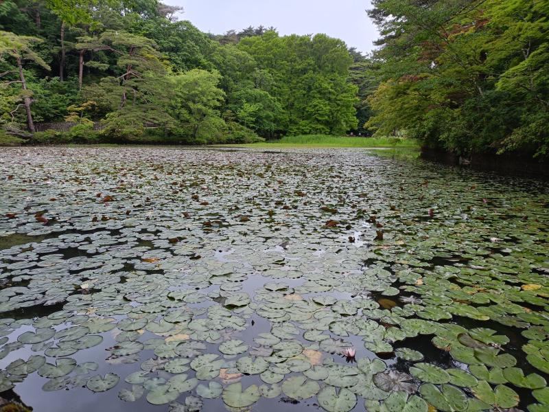 長谷池は蓮がちらほら咲いていて、涼しげです。