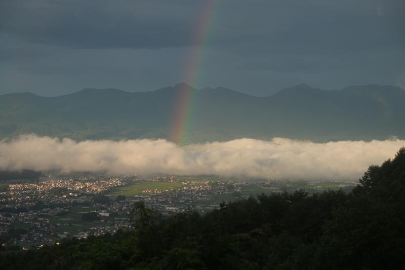 帰路途中に、なんと八ヶ岳と素晴らしい虹の展望を頂きました。