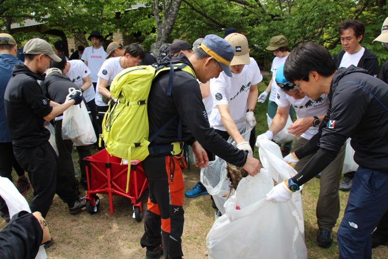 2025年5月15日に好日山荘の全国の店長と、アウトドアブランド様ご担当者様、その他関係者様が一堂に会し、ごみ拾い ハイキングを兼ねたクリーンハイキングを摩耶山にて開催しました。