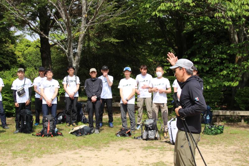 ゴミ拾い後は一旦解散としましたが、中々ない機会ですので、約1時間ほど登山学校校長の田中ガイド指導の下、正しい歩き方の講習会を行い、今後、店舗での接客に活かせるよう講習会を行い全てのプログラムを無事終了いたしました。