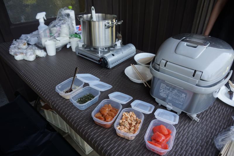 ランチはさっぱり冷やし出汁を使った具沢山どんぶりと焼きおにぎりや塩サバなどプチ焼き物も頂きました。