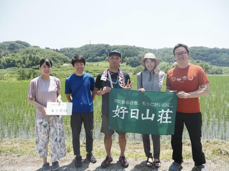 まずはオーナーさまである木下さまにお米作りの流れやこだわりポイントなどを教えていただきました。植物のレンゲの力を借りながら無農薬で作る木下農園さんのお米は『農林22号』という、コシヒカリの親となる品種です。冷めても美味しくあっさりとした万人ウケするお味。