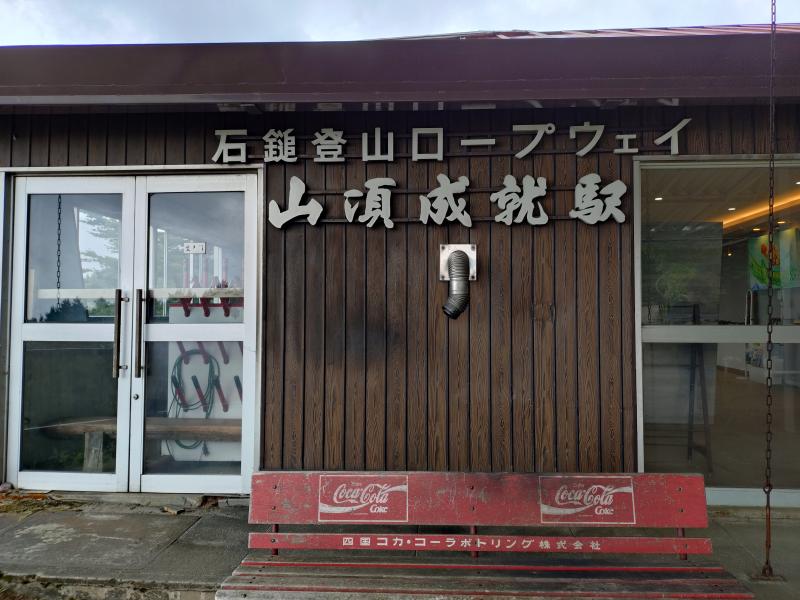 駐車場(有料)→(5分)→ロープウェイ山麓 下谷駅(455m)→(8分)→山頂 成就駅(1300m)→(25分)→石鎚神社 中宮 成就社→試しの鎖(上り48m、下り19m)→(80分)→前社ヶ森小屋→一の鎖(33m)→(50分)→石鎚山公衆トイレ休憩所※チップ制→二の鎖(65m)→三の鎖(68m)→(35分)→弥山/石鎚神社 頂上社(1972m)→(15分)→天狗岳(1982m)