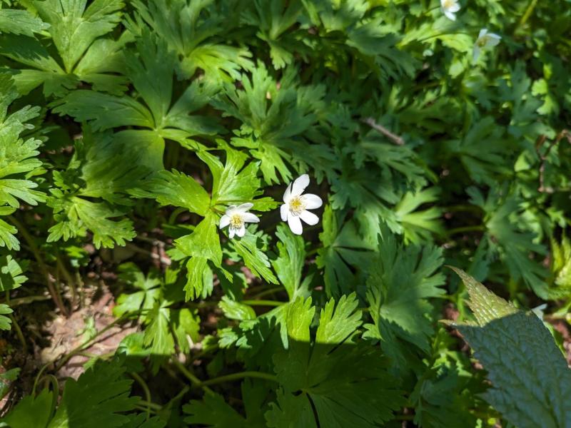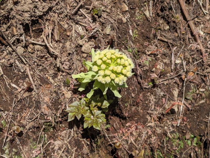 登山口付近にはたくさんの野草と山菜があり、なかなか前に進めません。