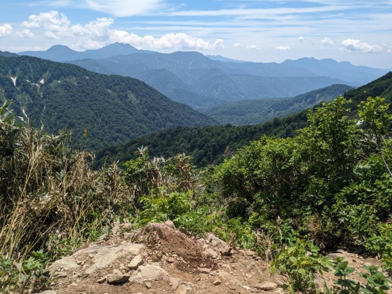 ボーっと山並みを眺めて、心も満足してしまい暑さに耐えきれず山頂まで行けずに下山開始。