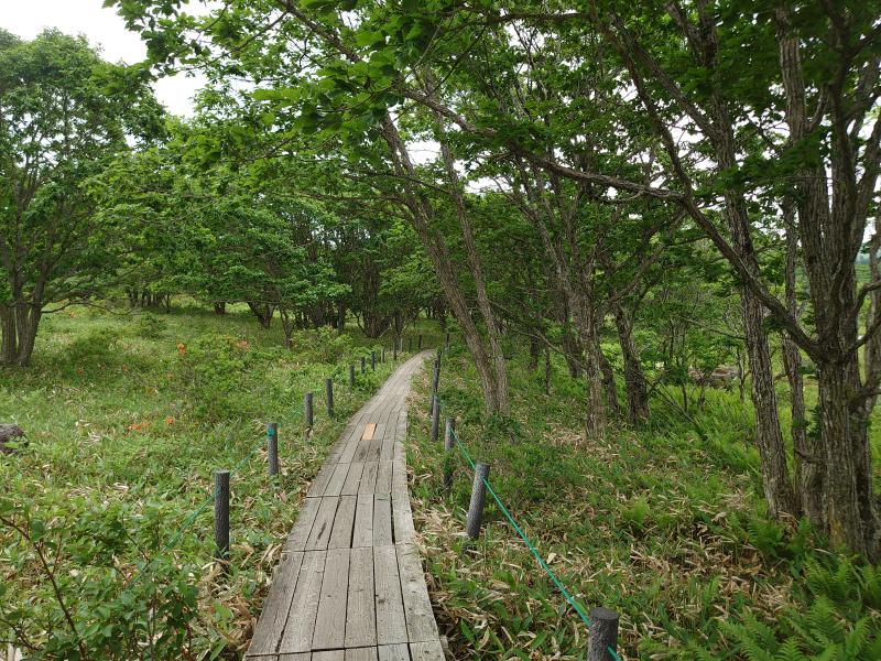 樹林帯の中を通った後、再び湿原沿いの木道を歩き、周回が終了になります。