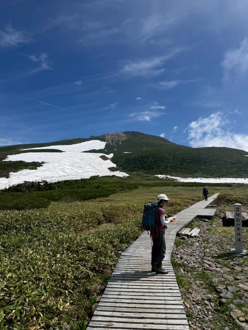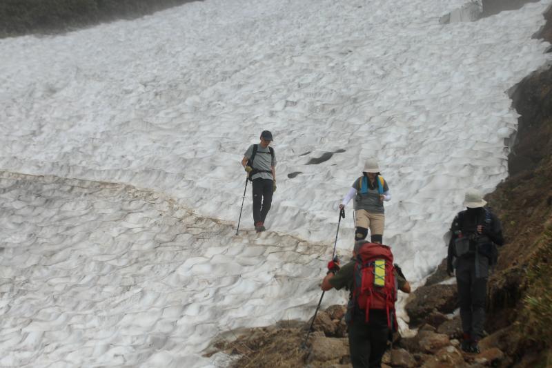 今回の個人的な感動は 雪田草原の アオノツガザクラ、コイワカガミ、 チングルマの素晴らしいお花畑と山頂の一部でのイワウメ (氷河期残存植物)に出会えた事です。