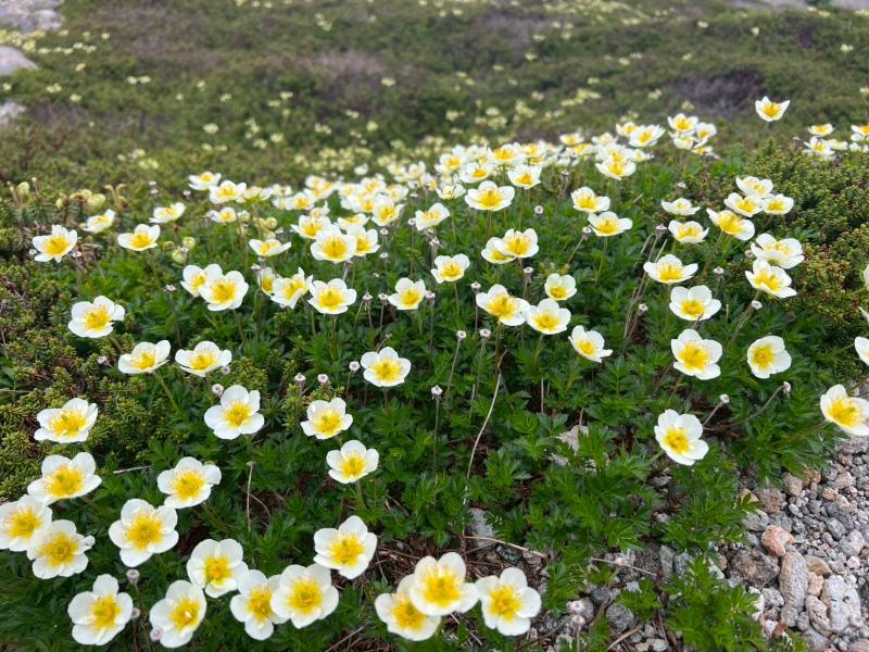 白山にお花の固有種がないのですが、大群生があります。 200種類以上の高山植物の西限になります。