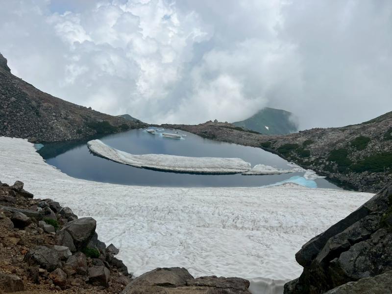 大池はアオノツガザクラ、チングルマ、コイワカガミの雪田草原のお花畑でした。