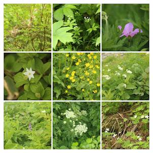 ④ニッコウキスゲ、ハクサンフウロ、ハクサンチドリ、ミヤマクワガタ、ツガザクラ、ヒメクワガタ、ベニバナイチゴ、ミヤマキンポウゲ、キバナノコメノツマ、ヨツバシオガマ