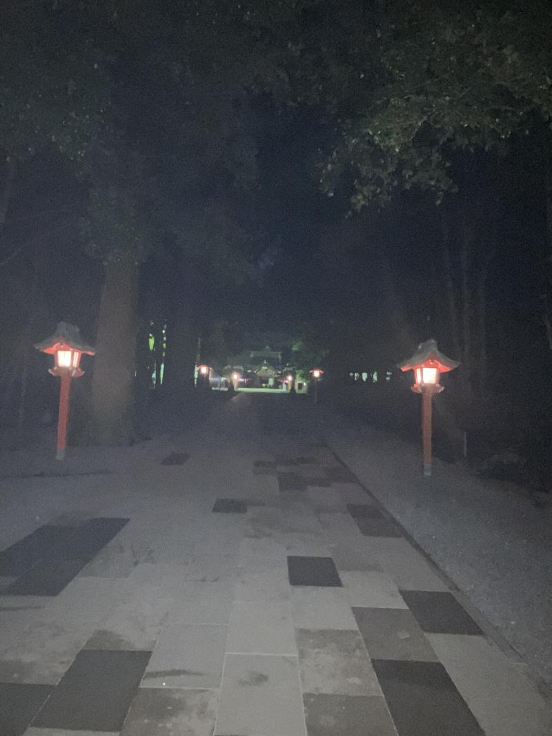 今回もナイトハイクでの出発。夜の霧島神宮を参拝。