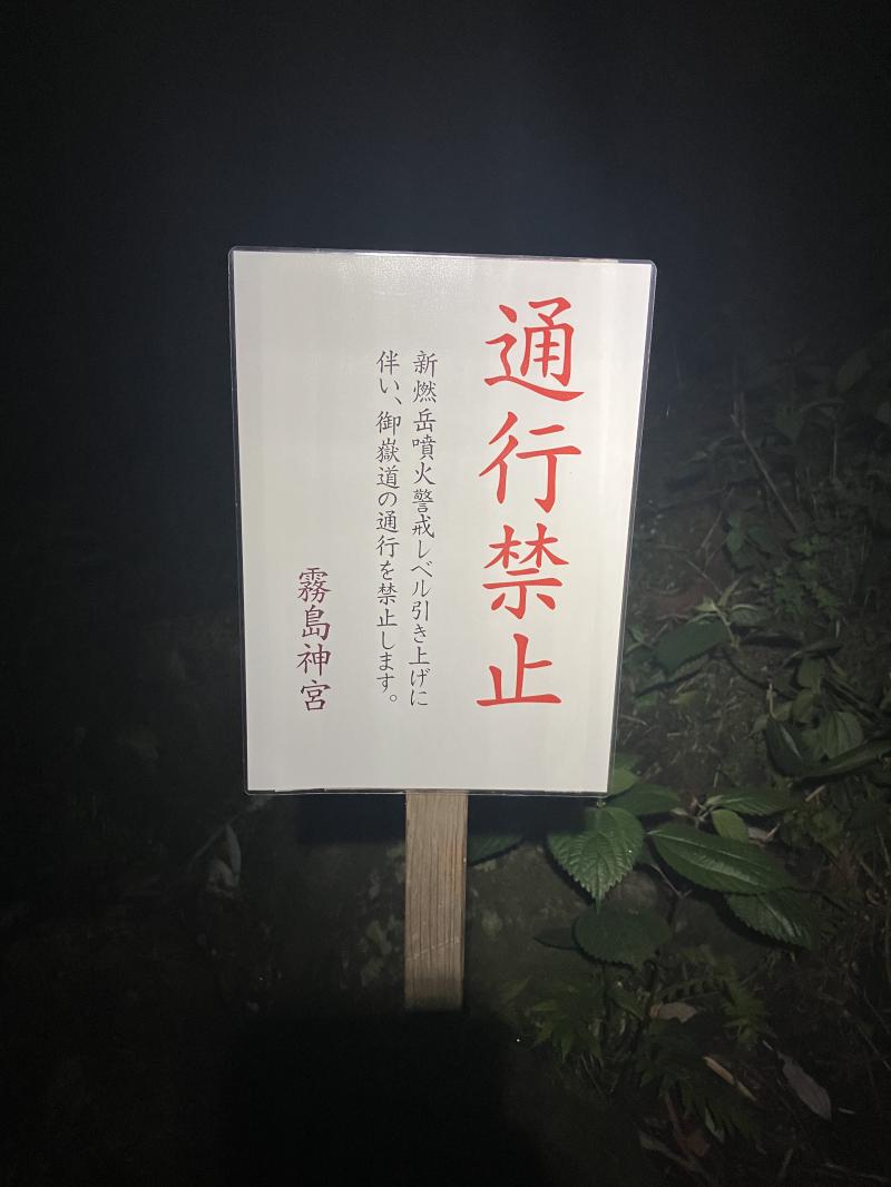 ライトアップされた本殿は神秘的で、夜ならではの荘厳な雰囲気を感じることができました。御嶽道が通行止めだったため、県道480号を延々と歩き、高千穂河原ビジターセンターに到着。