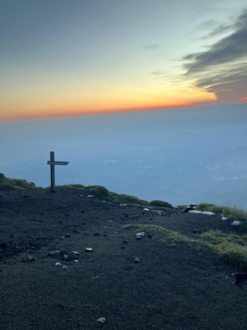 山頂は非常に寒く、小屋に避難。エマージェンシーシートに包まって仮眠。結果、見事にご来光をスルー(笑)