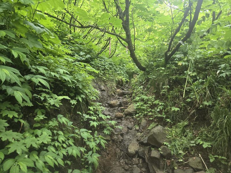 ○六弥勒~戸隠牧場・・・泥、石、木の根がミックスの急斜面。転倒注意
