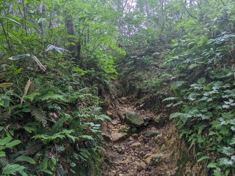 登山道は比較的わかりやすく整備されているが雨が降ったら登山道に雨が流れ込んできそうです。