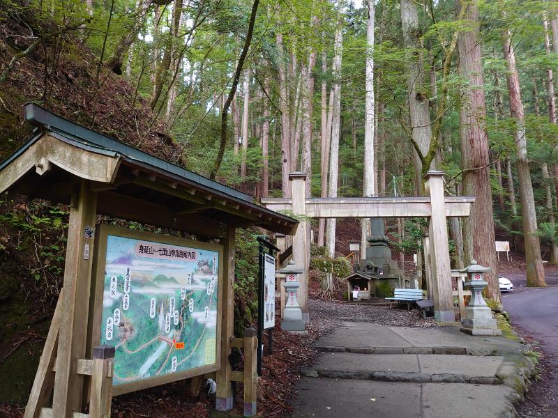 - 表参道登山口(168分)和光門(12分)敬慎院(40分)七面山(35分)敬慎院(100分)表参道登山口