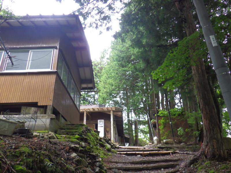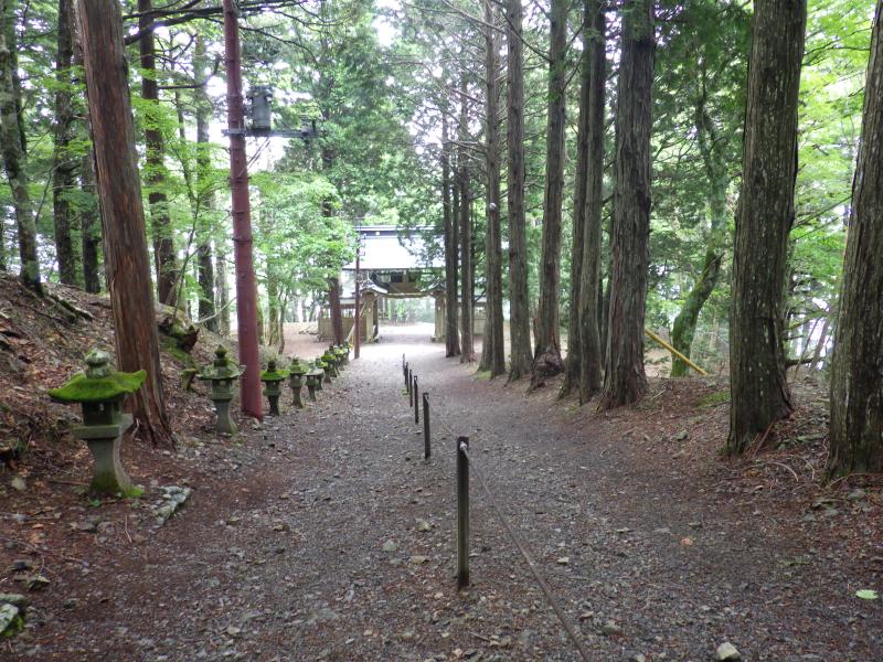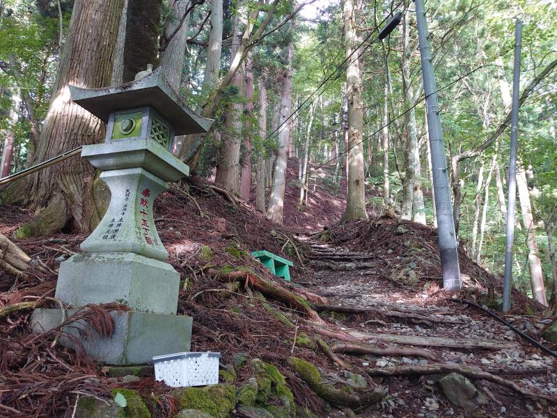 表参道・裏参道とありますが、梅雨の中休みで蒸し暑いということで、表参道のみの往復としました。表参道は敬慎院まで全部で50丁(1丁は約109m)あり、各丁に石灯籠が建てられていて、これを目安に登って行きます。深い樹林帯の中をジグザグ登り一辺倒で、危険個所はないですが、敬慎院まで標高差1200mとさすがに長く感じます。