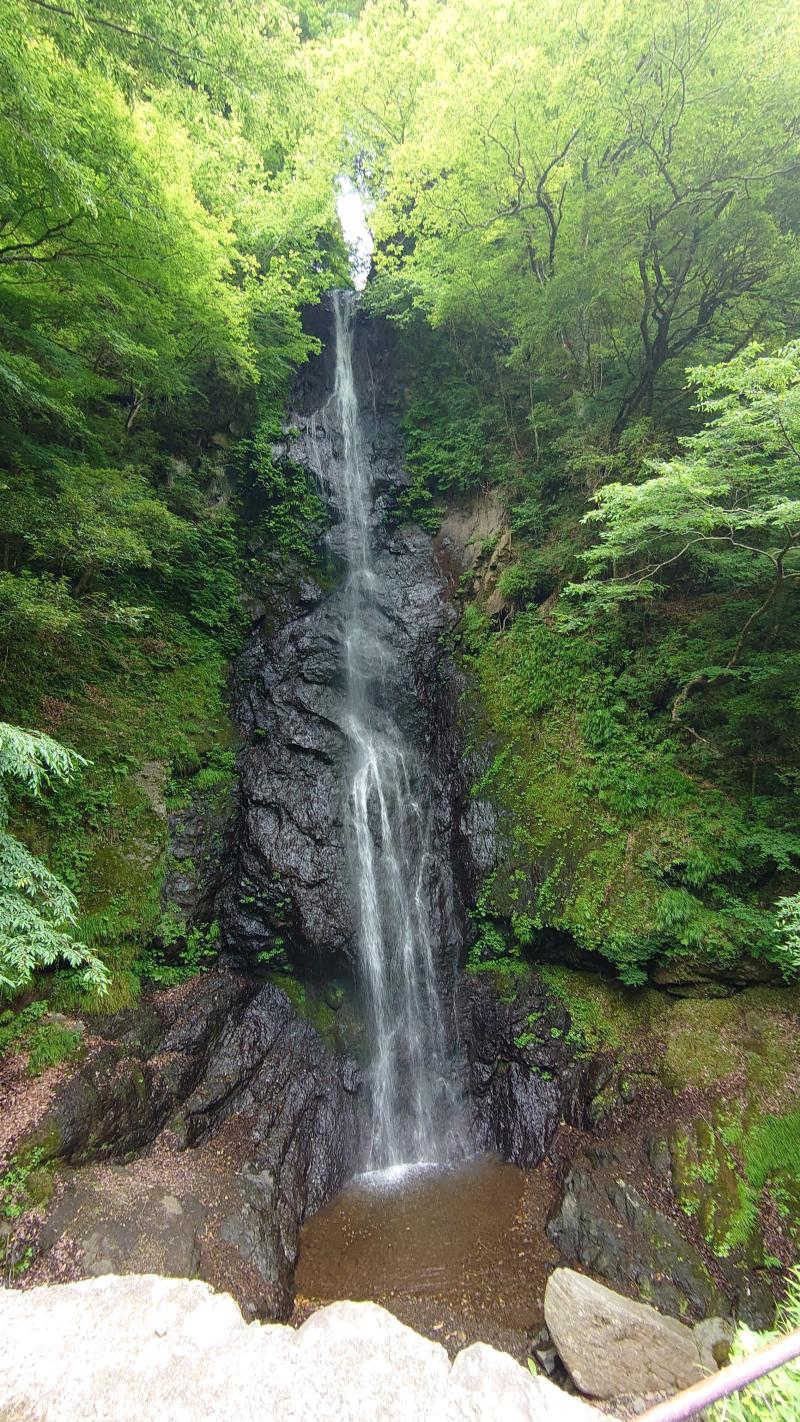 ②登山口近くに白糸の滝があります
