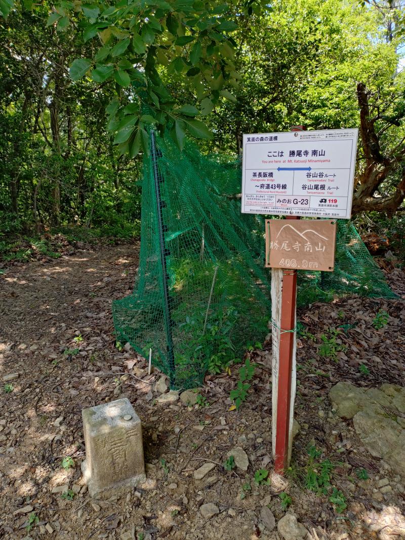「勝尾寺南山」406.6mと標高はそこまで高くないですが、コースもいろいろとありなかなかと登りごたえのある山です。だるまで有名な「勝尾寺」まで足を運んだりしているうちに箕面の山を約7時間も歩いていることに。