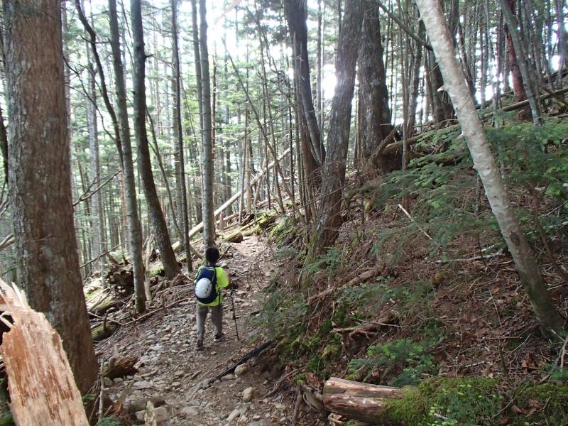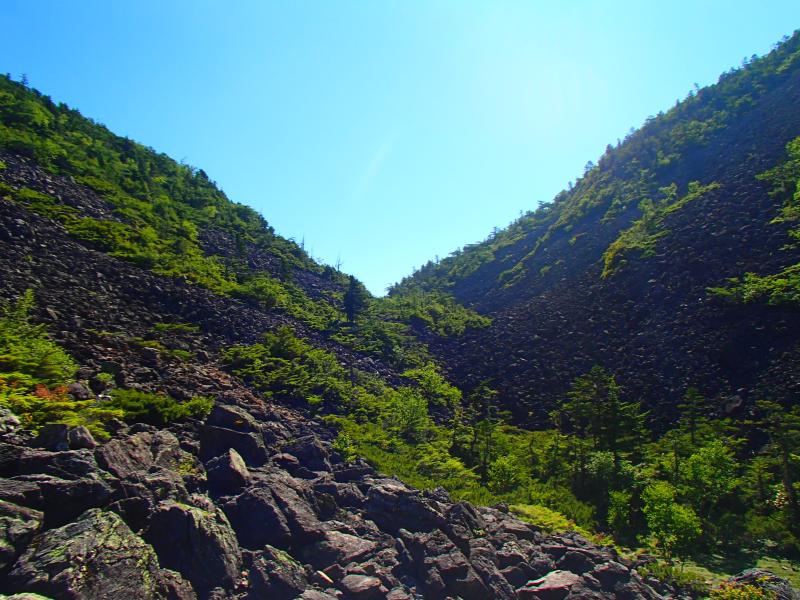 仙水小屋からしばらく登ると左側がゴーロ状(岩がたくさん転がっている)の斜面に変わります。