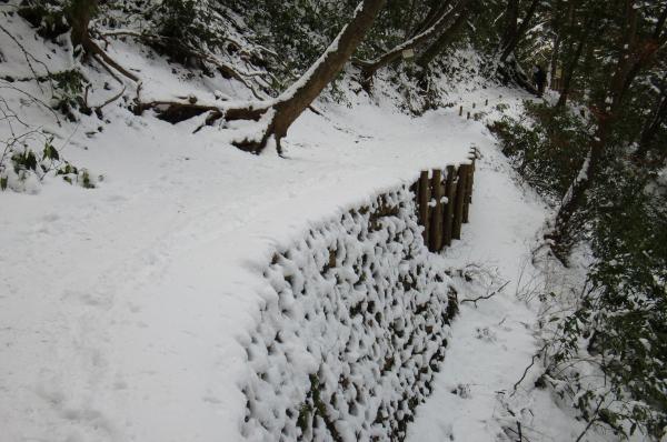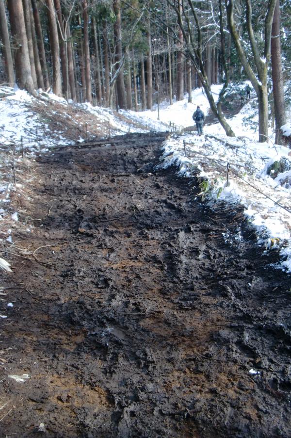高尾山から影信山へのルートは雪が解け田んぼのような泥道に。。