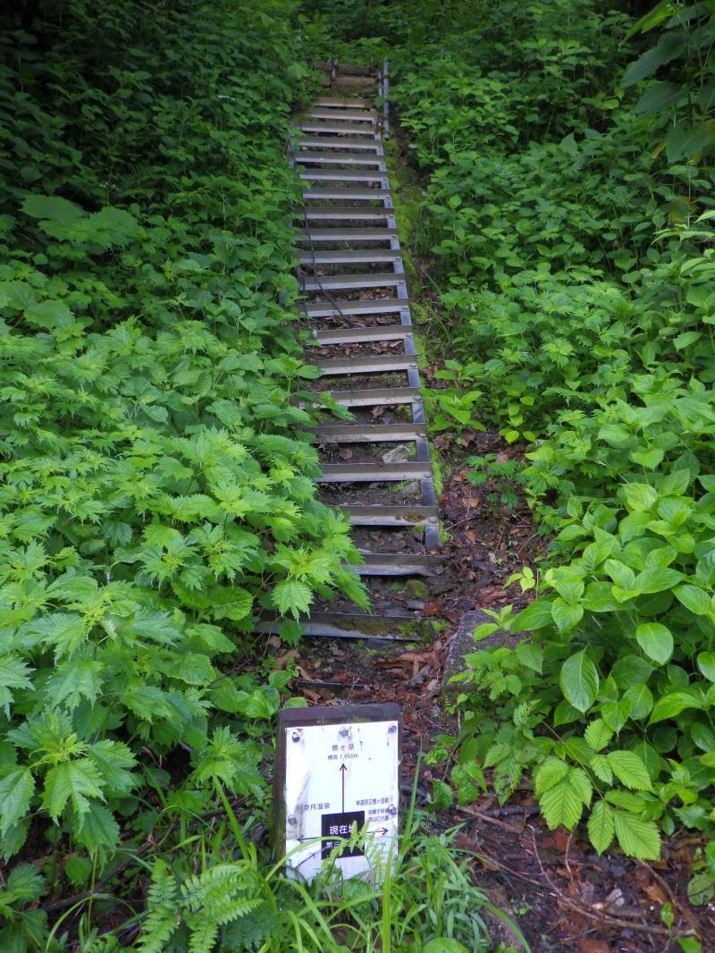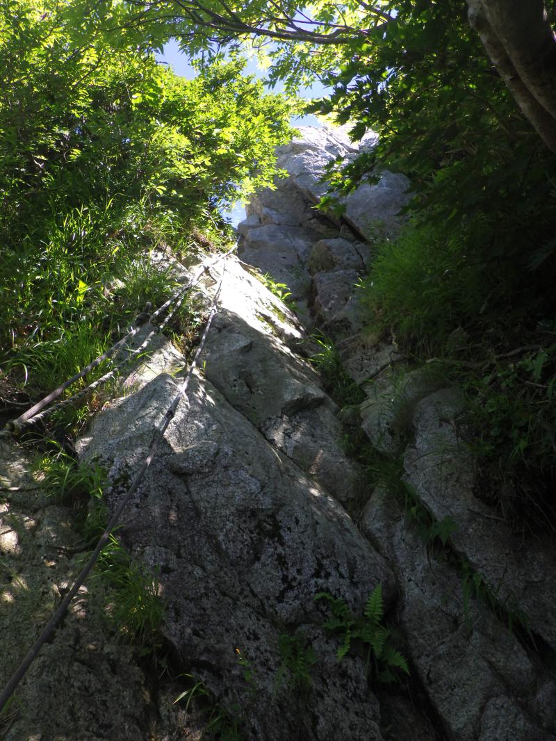 ⑥第三登山口から梯子で尾根へ出て、そこから1431mピークまでさらに急登です。一旦下った後はゆるい傾斜に変わります