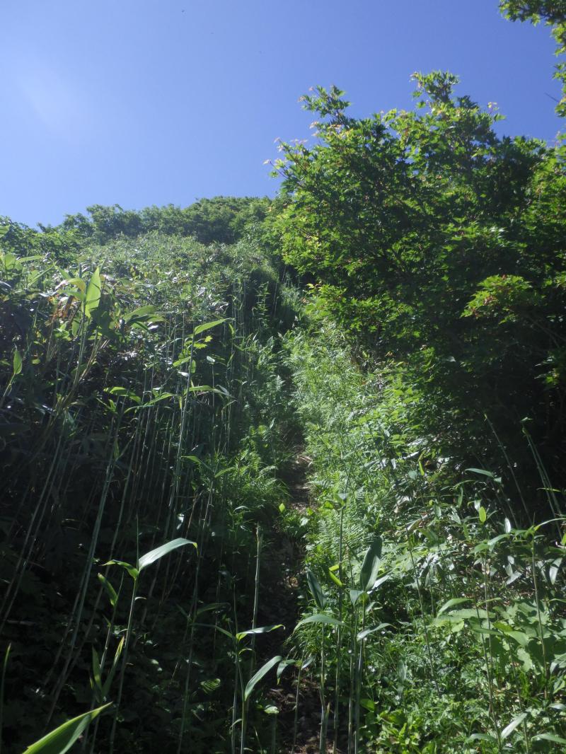 今年は早く梅雨明けの声を聞き、念願の僧ヶ岳へ登れました。本来は今の時期にちょうど宇奈月尾根の第三登山口1043mまで林道が開通しているはずと思っていた所、今年は残雪が多かったのもあり林道の状態が悪く、開通見込みがないということで仕方なく、宇奈月尾根の第ニ登山口650mからのスタートとなりました。