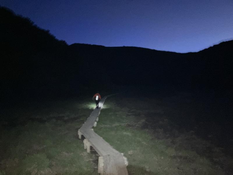 スタート直後は冷え込みが厳しく、清田さんにお借りしたファイントラックのエバーブレスフォトンを着用。薄手の行動着では寒すぎて、太陽が出るまでは脱げないほどでした。