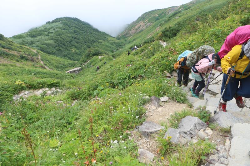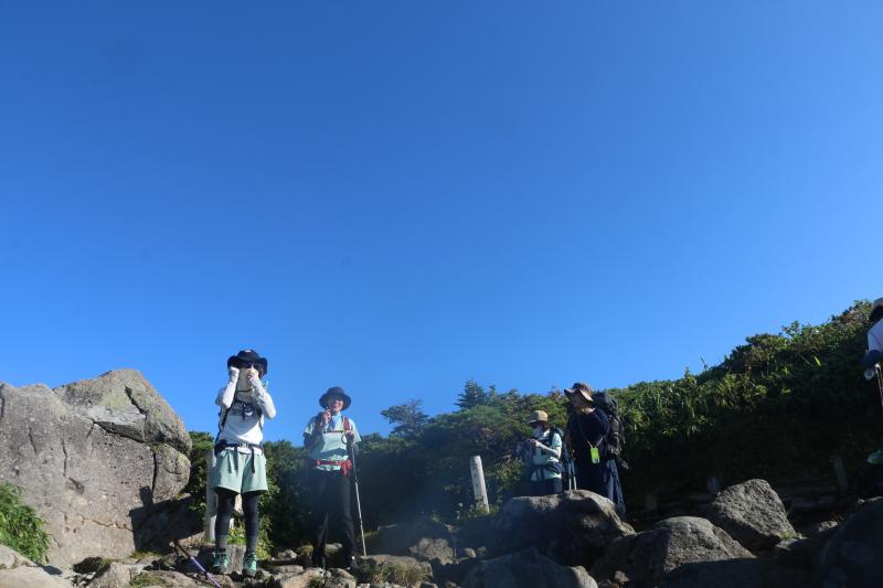 登る途中、地元白山情報をいつも教えていただく友人とお子様にばったり遭遇して登山道で抱き合いました。