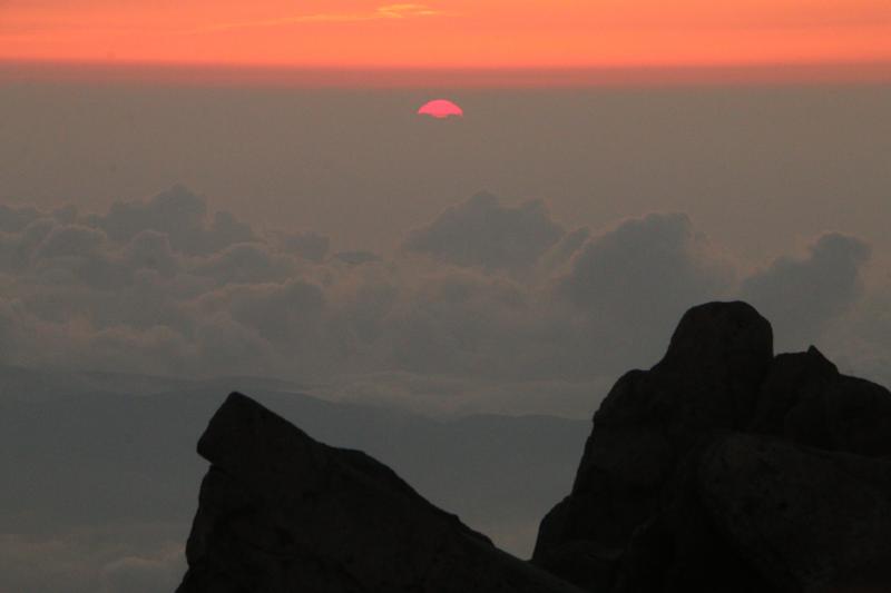 一日目の夕食(17:00)~ から 晴れたので 御前峰(2002M)ピークに登り(この日の夕焼けに間に合ったのは自分達3名ともうひと方でした)お写真撮っていただきありがとうございました。