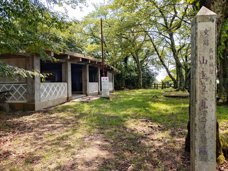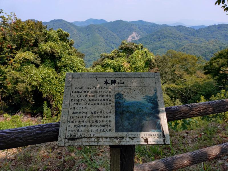 また、山上ノ丸から東に約1.5kmの位置には、信長の指示で秀吉が鳥取城を「兵糧攻め」した際に築かれた本陣「太閤ヶ平/たいこうがなる」のある本陣山 標高251mに現在でも土塁や空堀がほぼ当時のままで残っている。