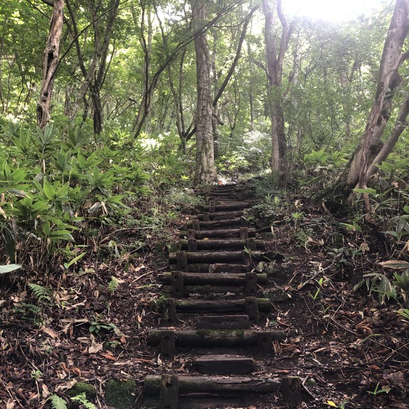 足元の登山道は綺麗に整備されてるんだけどこれがまたいい感じの階段状になってて