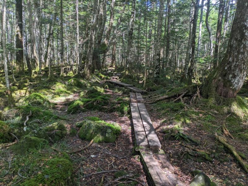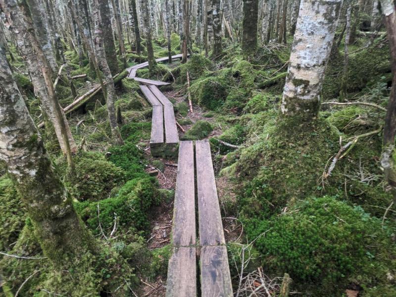 木道がしっかり整備されていて歩きやすいですが、岩場が苔で滑りやすくなっているので