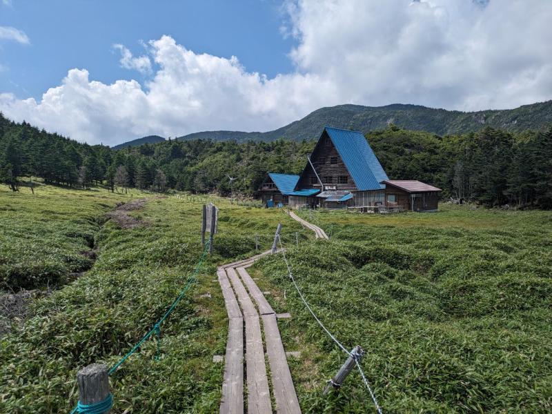 途中に縞枯山荘がありますが営業しているタイミングで訪れたことがありません。