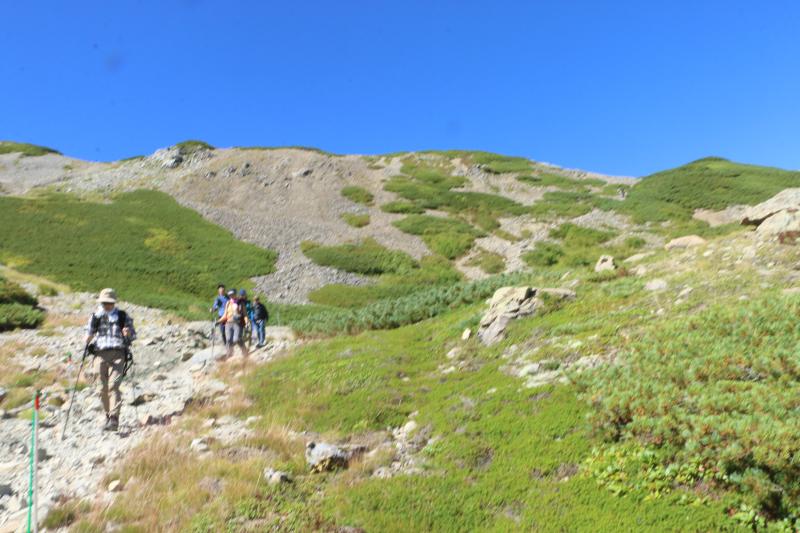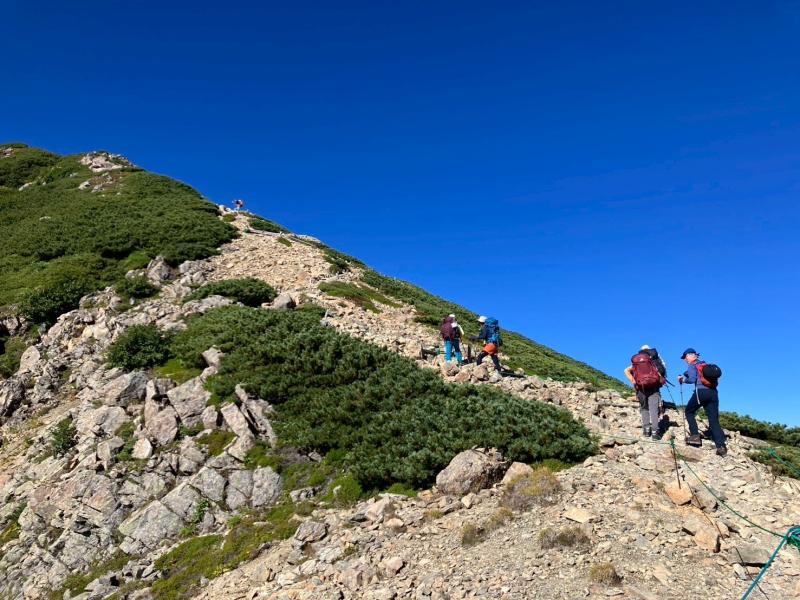 仙丈ヶ岳は氷河によって形成された「藪沢カール」「小仙丈カール」「大仙丈沢カール」の3つのカールを持っていて、素晴らしいカールにも皆様の歓声がとまりませんでした。