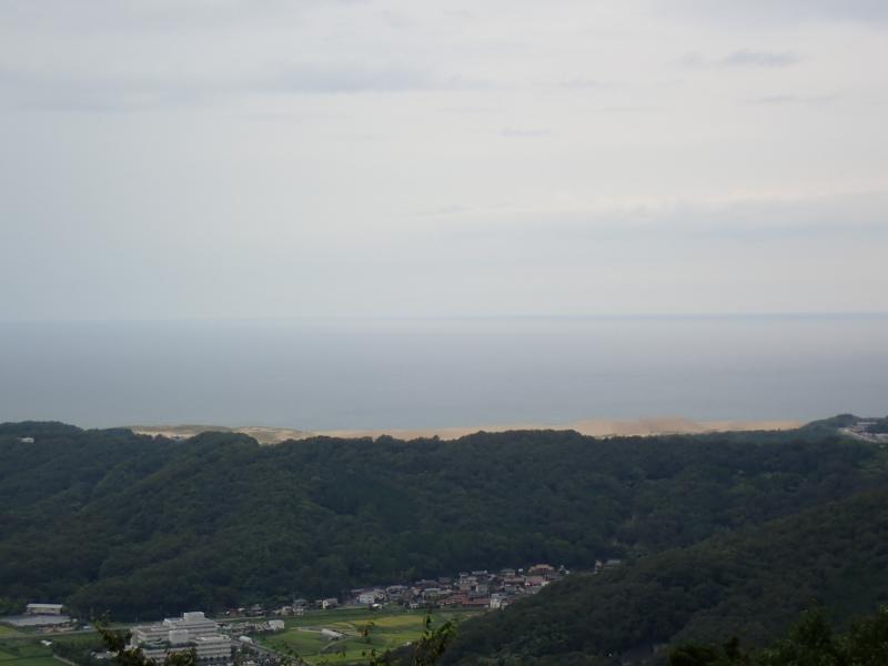 本陣山からは登山道に入って道なりに進んで行くと、伝羽柴秀長陣の跡に到着。曲輪や竪堀が残っていました。さらに道なりに進んで行くと、久松山の山頂に築かれた鳥取城本丸に到着。ここは大規模な石垣が見所です。山頂からは鳥取砂丘や市内が一望できるためか、夕方になっても登って来る方が結構おられました。