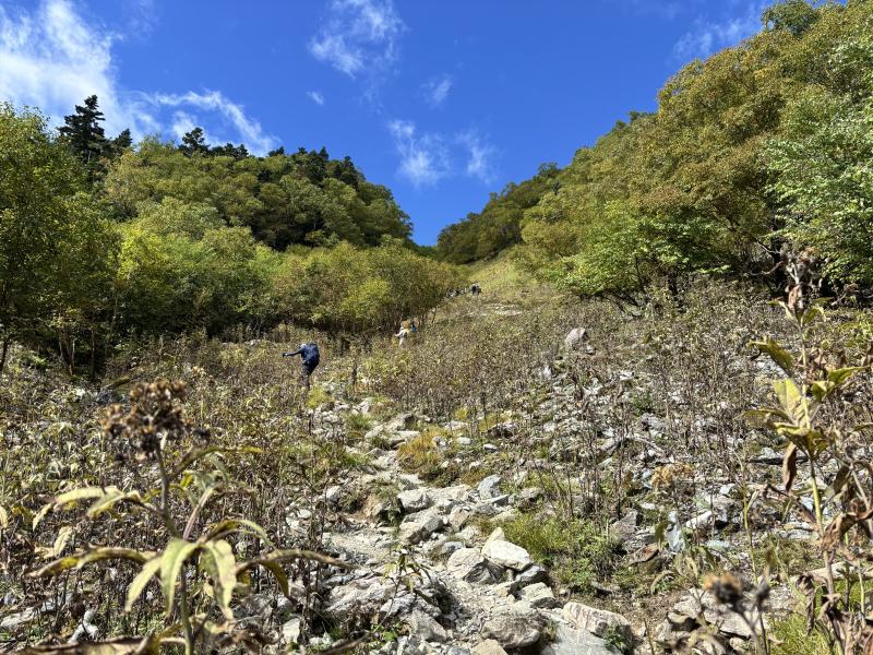 草すべりはテント泊などの重装備でも安全なルートになります。