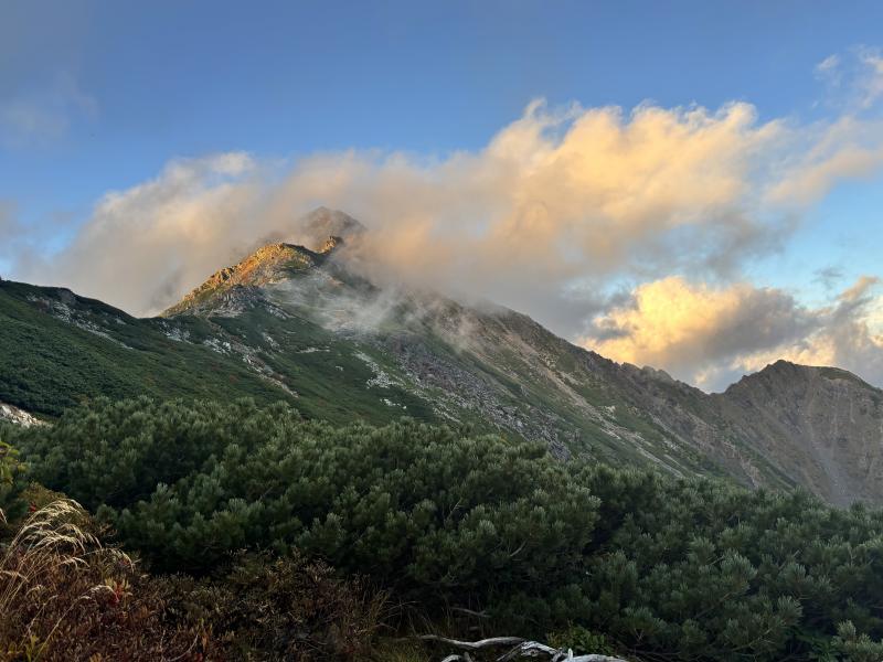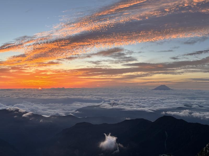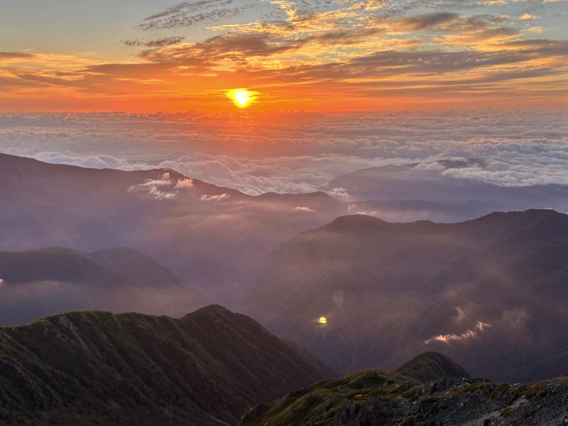 朝4時に間ノ岳に向かい始め、キレイな日の出とご来光を見ました。