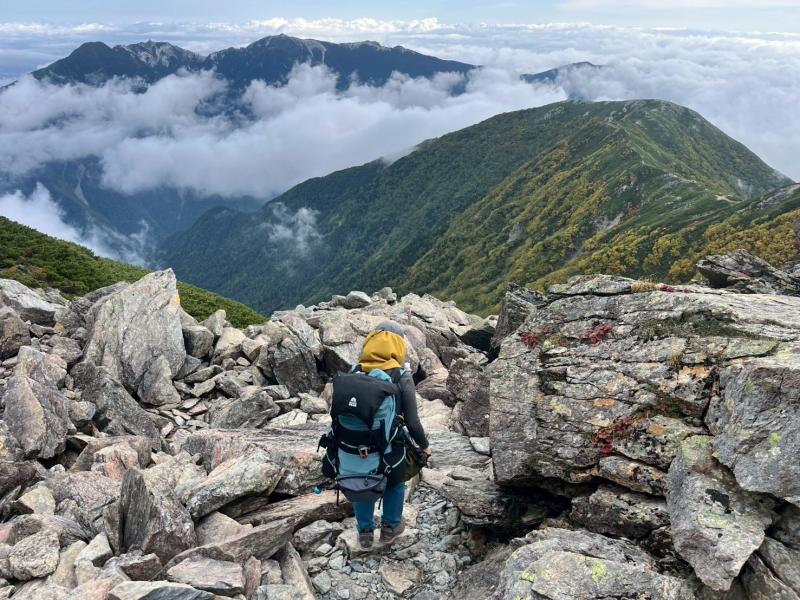 - 北岳山荘から八本歯のコルまでは大きい岩の激下りで歩きづらいです。