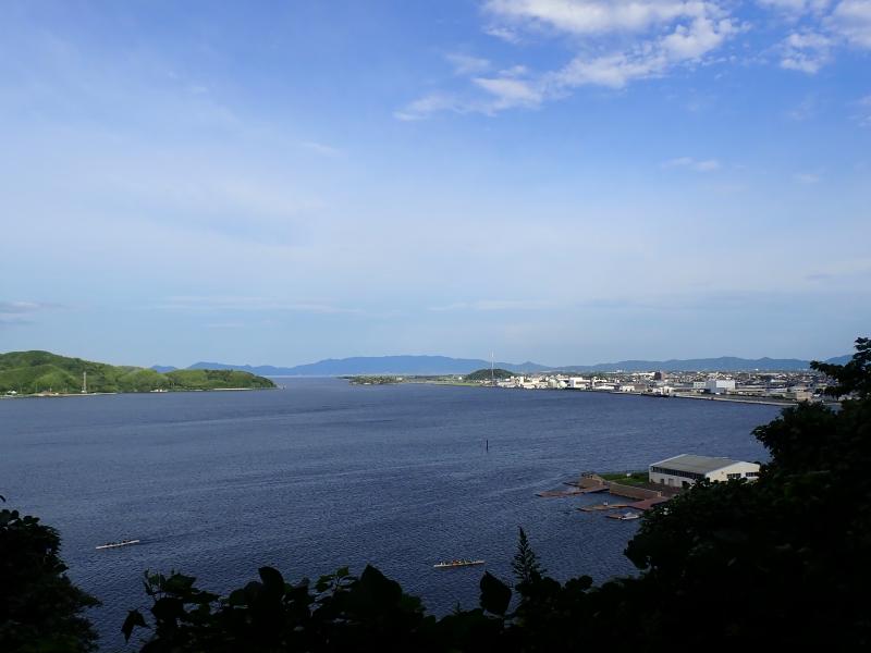 中海側展望台からは米子城本丸のある湊山の山頂へ。360度の展望が見事な山頂でした。ここからは季節によって、大山の山頂部から日が昇る「ダイヤモンド大山」が見えるそうです。
