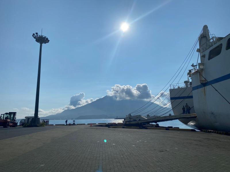 鹿児島湾内をフェリーが航行している時、たまにトビウオが並走するように飛び出すことがあると今村さんが教えてくれ、写真に収めようとしばらく海にカメラを向けてみましたが残念ながら見ることはできず。