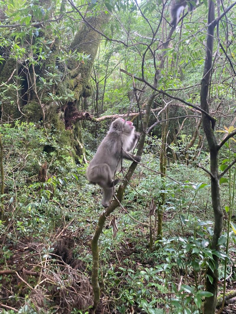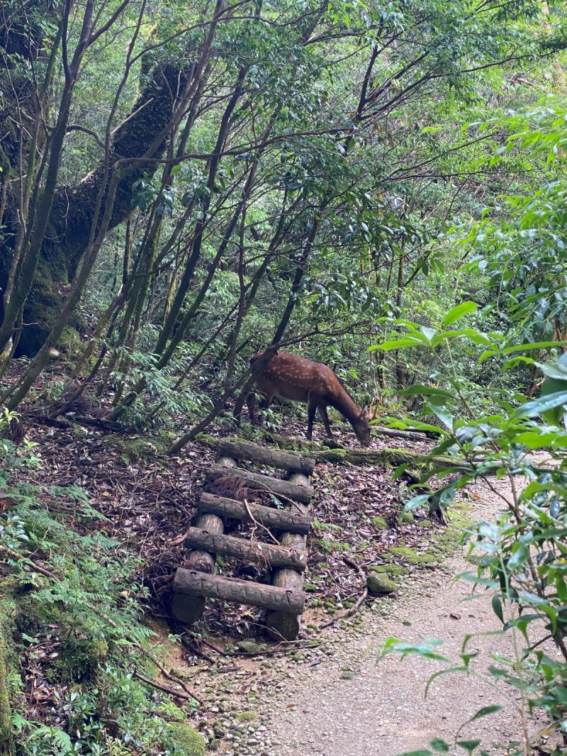 午前中降っていたであろう雨はすっかり上がり、湿度たっぷりの屋久島の森が広がっていました。淀川登山口から歩き始めてすぐにヤクザルとヤクシカがトレイルを塞ぎにかかってきて、さらに屋久島の風情を盛り立てます。彼らはあまり人を怖がらないので本当にそこら中で見かけますね。